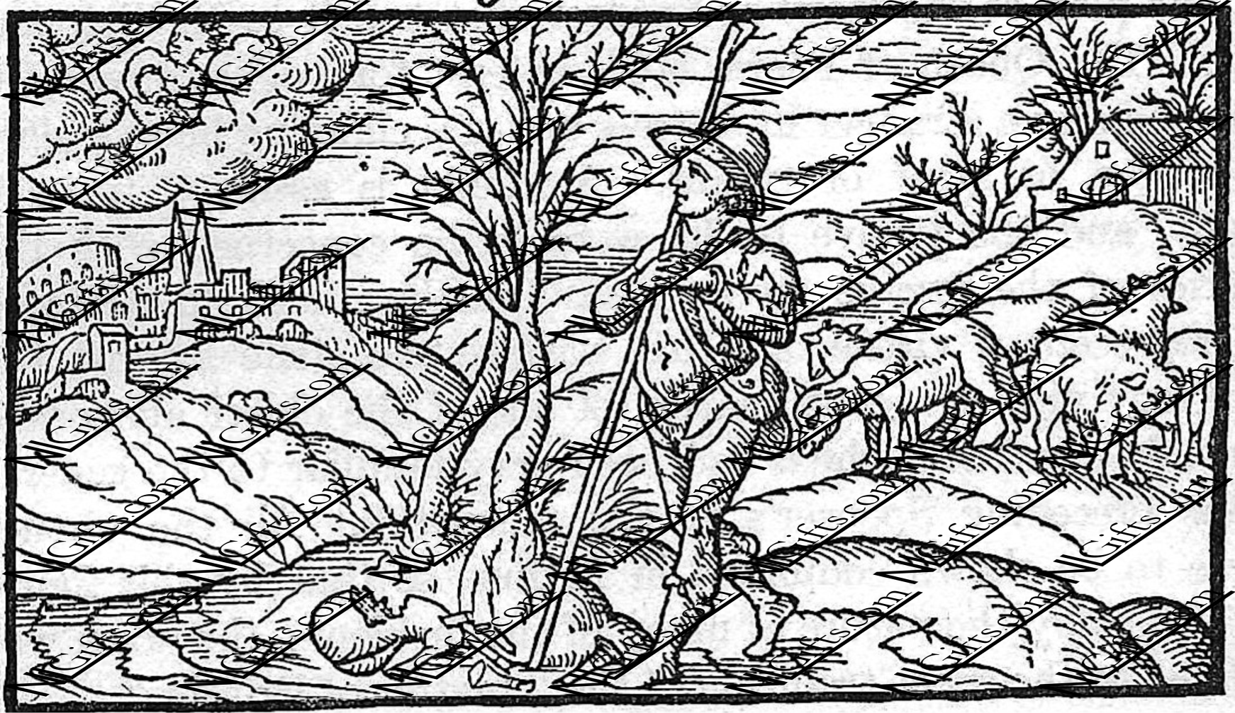 Illustration: Januarye. from " The Shepherds' Calendar"