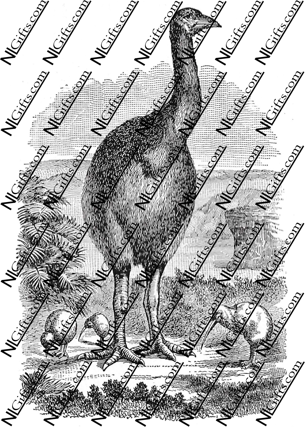 Illustration: The Moa as it is to have appeared in life; with Kiwis.
